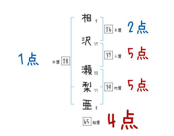 相沢瀬梨亜さんの画数の鑑定結果