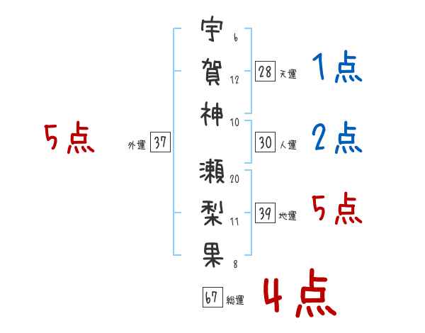 宇賀神瀬梨果さんの画数の鑑定結果