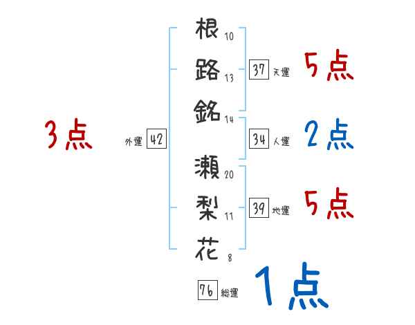 外運![]() | 根路銘瀬梨花さんの外運は42画の3つ星!病気に注意。多芸であるが消極的でおとなしい。 生活面を象徴する運勢です。外部から受ける影響力を表し、結婚運、家庭運や職場、環境への順応性を表します。 |