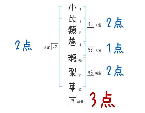 小比類巻瀬梨菜さんの画数の鑑定結果