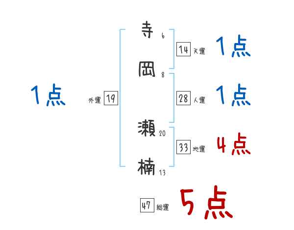 寺岡瀬楠さんの画数の鑑定結果