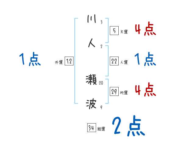 総運![]() | 川人瀬波さんの総運は34画の2つ星!独創性に優れるが、自尊心が強く災難に注意しましょう。 あなたの人生を表す1番重要な運勢です。生涯を通じて影響する総合運となり、主に50歳以降の晩年期に影響を及ぼします。 |