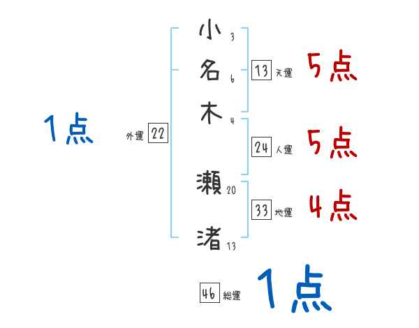小名木瀬渚さんの画数の鑑定結果