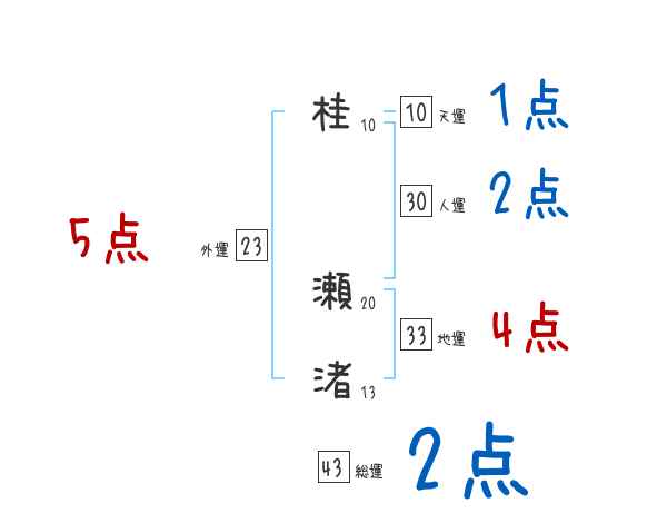桂瀬渚さんの画数の鑑定結果