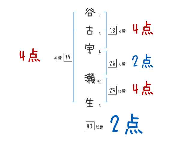谷古宇瀬生さんの画数の鑑定結果
