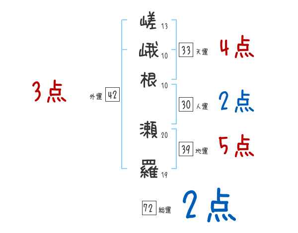 嵯峨根瀬羅さんの画数の鑑定結果