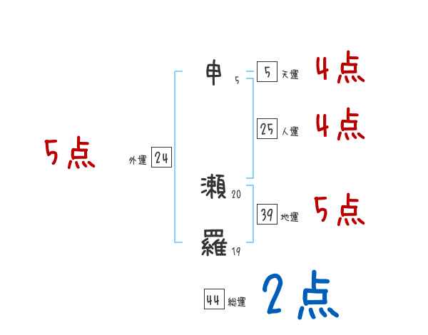 申瀬羅さんの画数の鑑定結果