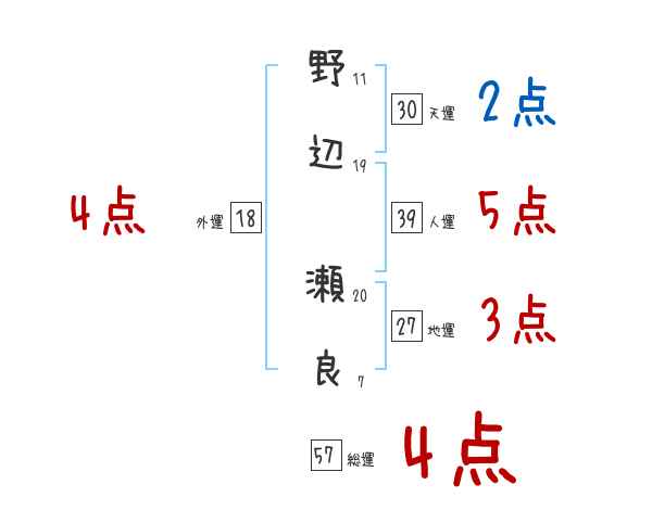 野辺瀬良さんの画数の鑑定結果