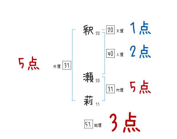 釈瀬莉さんの画数の鑑定結果