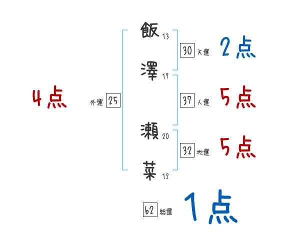 飯澤瀬菜さんの画数の鑑定結果