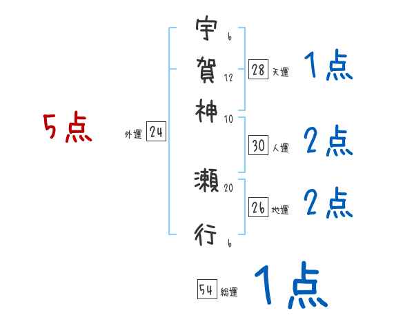 宇賀神瀬行さんの画数の鑑定結果