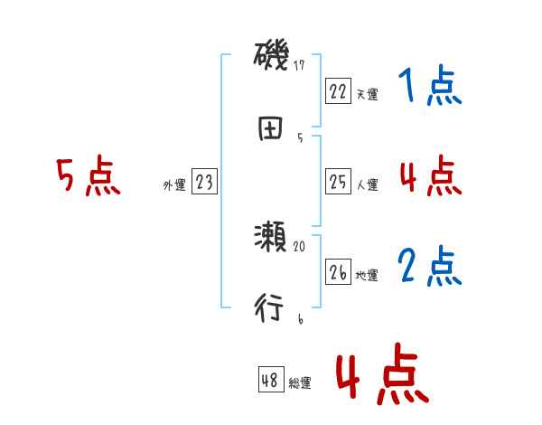 磯田瀬行さんの画数の鑑定結果