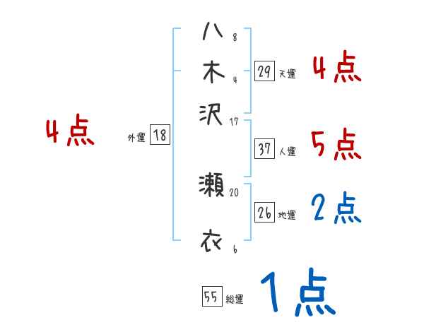 八木沢瀬衣さんの画数の鑑定結果