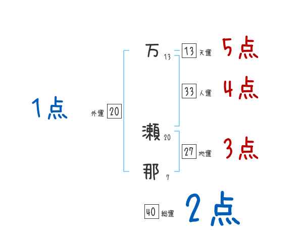 万瀬那さんの画数の鑑定結果