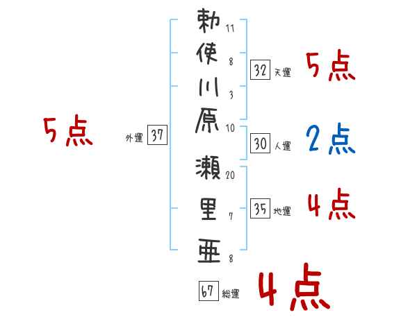 勅使川原瀬里亜さんの画数の鑑定結果