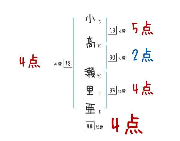天運![]() | 小高瀬里亜さんの天運は13画の5つ星!才能に恵まれ人気がある。名声を手に入れる。円満な人生。 家系が持つ宿命的な運勢を表します。祖先から受け継いだ苗字ですので自分の力が及びません。家柄を象徴します。 |