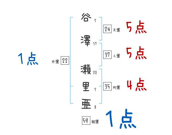 谷澤瀬里亜さんの画数の鑑定結果