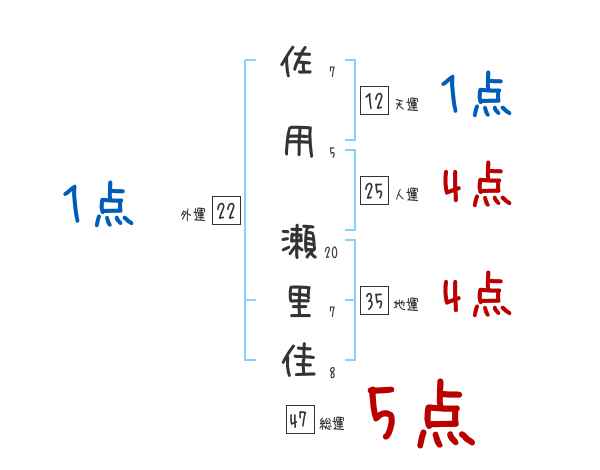 天運![]() | 佐用瀬里佳さんの天運は12画の1つ星!簡単な失敗で諦めてしまいやすいかも。着実に行動すると良いでしょう。 家系が持つ宿命的な運勢を表します。祖先から受け継いだ苗字ですので自分の力が及びません。家柄を象徴します。 |