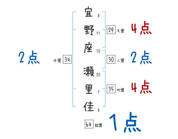 宜野座瀬里佳さんの画数の鑑定結果