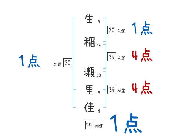人運![]() | 生稲瀬里佳さんの人運は35画の4つ星!温厚な性格で感受性が高い。穏和な性格で人望が厚い。 性格や才能などを表す2番目に重要な運勢です。人間関係や協調性、社会的な成功に影響します。主に20歳から50歳ぐらいまでの中年期の運勢を表します。 |