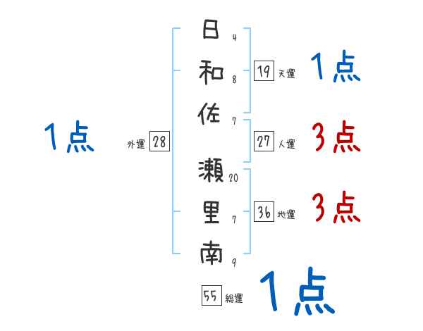 天運![]() | 日和佐瀬里南さんの天運は19画の1つ星!優れた才能を持ちますが、協調性が足りないことも。周りの人と協力する事を意識しましょう。 家系が持つ宿命的な運勢を表します。祖先から受け継いだ苗字ですので自分の力が及びません。家柄を象徴します。 |