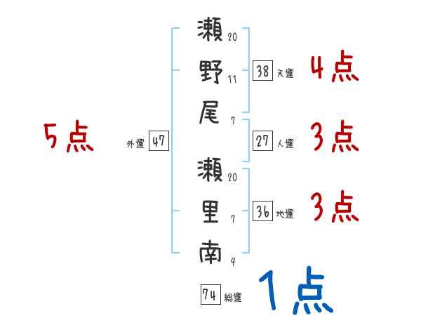 瀬野尾瀬里南さんの画数の鑑定結果