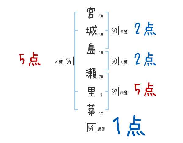 宮城島瀬里菜さんの画数の鑑定結果