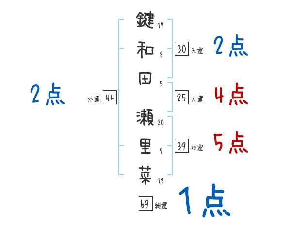 鍵和田瀬里菜さんの画数の鑑定結果
