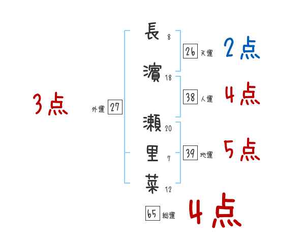 長濵瀬里菜さんの画数の鑑定結果