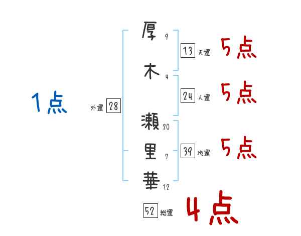 厚木瀬里華さんの画数の鑑定結果
