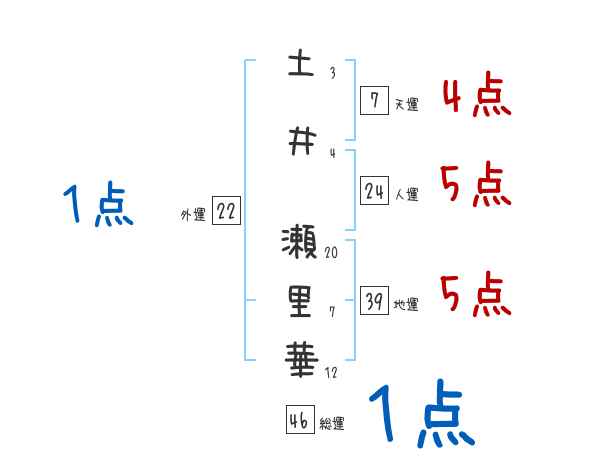 天運![]() | 土井瀬里華さんの天運は7画の4つ星!強い意志や信念を持ち独立心が強い。自立する。 家系が持つ宿命的な運勢を表します。祖先から受け継いだ苗字ですので自分の力が及びません。家柄を象徴します。 |