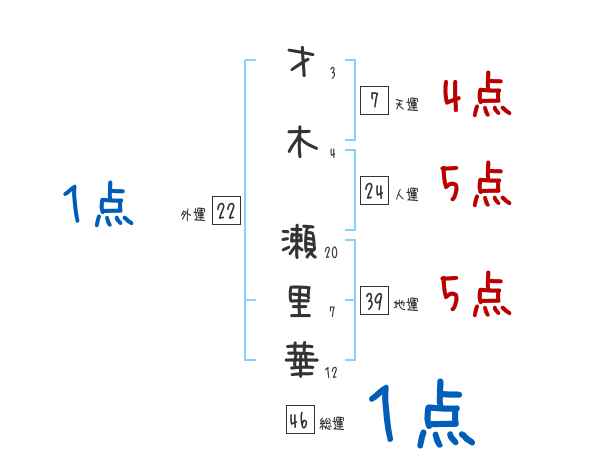 才木瀬里華さんの画数の鑑定結果