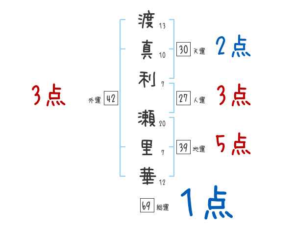 渡真利瀬里華さんの画数の鑑定結果