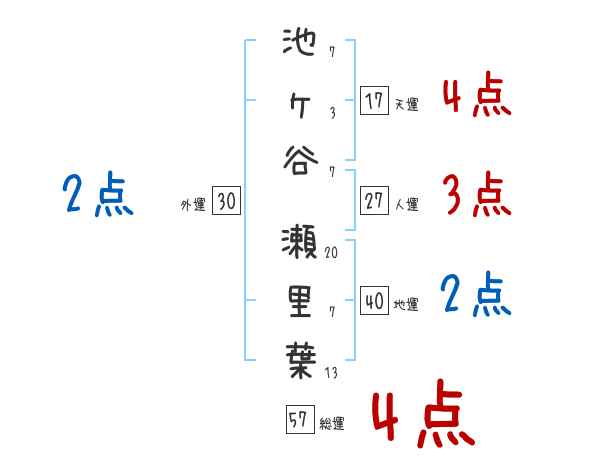 池ヶ谷瀬里葉さんの画数の鑑定結果