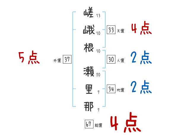 外運![]() | 嵯峨根瀬里那さんの外運は37画の5つ星!努力家で順応性に優れる。現実的な考え方ができ忠実に物事をこなす。 生活面を象徴する運勢です。外部から受ける影響力を表し、結婚運、家庭運や職場、環境への順応性を表します。 |