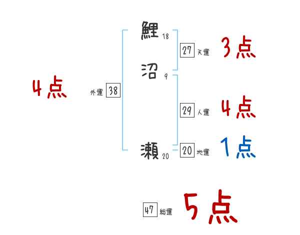 天運![]() | 鯉沼瀬さんの天運は27画の3つ星!頭脳明晰だが強情で摩擦が多い傾向。孤立に注意。 家系が持つ宿命的な運勢を表します。祖先から受け継いだ苗字ですので自分の力が及びません。家柄を象徴します。 |