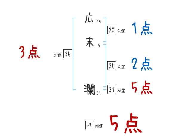 総運![]() | 広末瀾さんの総運は41画の5つ星!大志を抱き、目標に向かって実力を発揮し達成する。温和な性格。 あなたの人生を表す1番重要な運勢です。生涯を通じて影響する総合運となり、主に50歳以降の晩年期に影響を及ぼします。 |