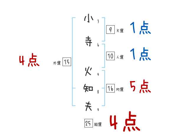 小寺火知夫さんの総運は25画の4つ星