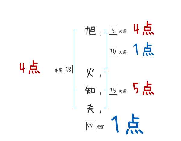 旭火知夫さんの画数の鑑定結果