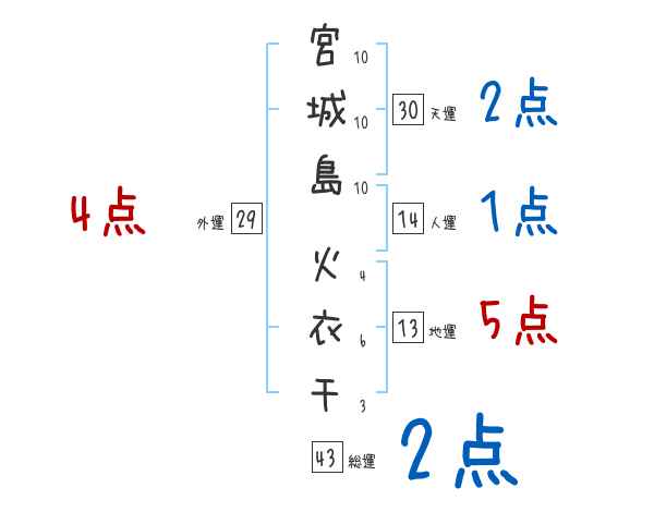 宮城島火衣千さんの画数の鑑定結果