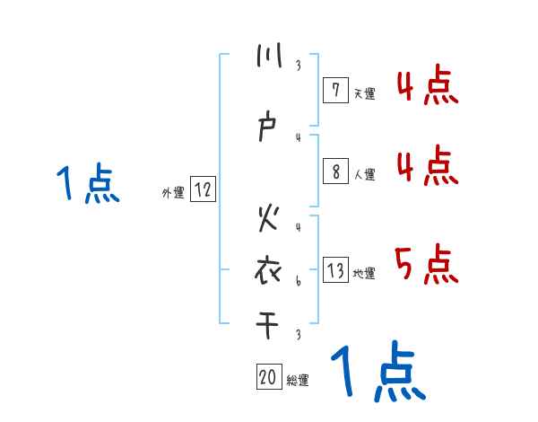 天運![]() | 川戸火衣千さんの天運は7画の4つ星!強い意志や信念を持ち独立心が強い。自立する。 家系が持つ宿命的な運勢を表します。祖先から受け継いだ苗字ですので自分の力が及びません。家柄を象徴します。 |