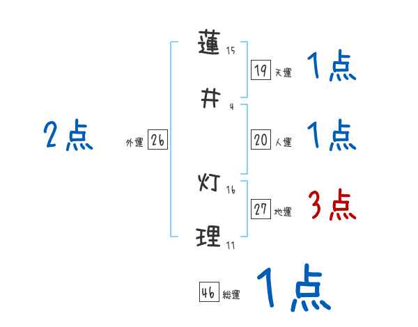 外運![]() | 蓮井灯理さんの外運は26画の2つ星!波瀾万丈かも。信頼できる人を大事にしましょう。 生活面を象徴する運勢です。外部から受ける影響力を表し、結婚運、家庭運や職場、環境への順応性を表します。 |