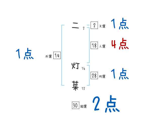 外運![]() | 二灯菜さんの外運は14画の1つ星!人に対して優しいがストレスを溜め込みがち。人間関係のトラブルを避けるよう気をつけましょう。 生活面を象徴する運勢です。外部から受ける影響力を表し、結婚運、家庭運や職場、環境への順応性を表します。 |