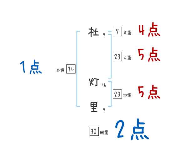 総運![]() | 杜灯里さんの総運は30画の2つ星!浮き沈みの激しさに注意しましょう。 あなたの人生を表す1番重要な運勢です。生涯を通じて影響する総合運となり、主に50歳以降の晩年期に影響を及ぼします。 |