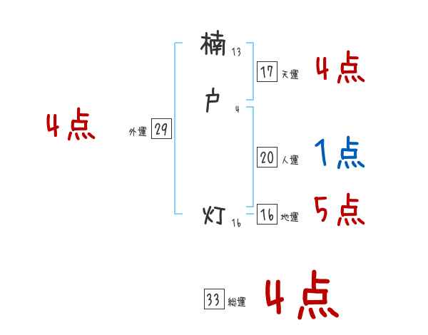 楠戸灯さんの画数の鑑定結果