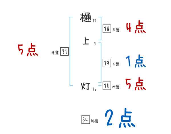 総運![]() | 樋上灯さんの総運は34画の2つ星!独創性に優れるが、自尊心が強く災難に注意しましょう。 あなたの人生を表す1番重要な運勢です。生涯を通じて影響する総合運となり、主に50歳以降の晩年期に影響を及ぼします。 |