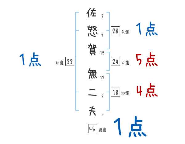 佐怒賀無二夫さんの画数の鑑定結果