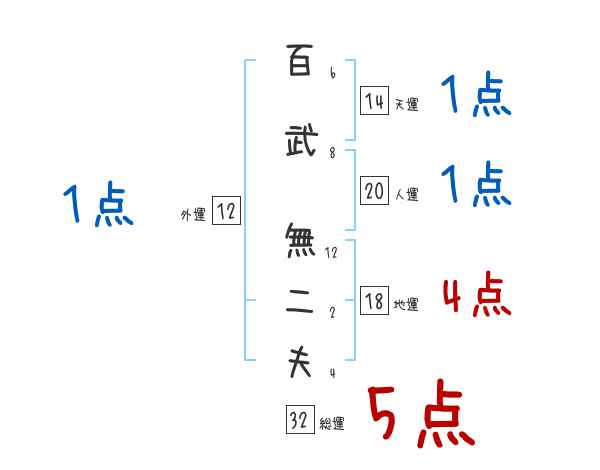 総運![]() | 百武無二夫さんの総運は32画の5つ星!柔軟性があり成功する。チャンスが多く金運が良い。 あなたの人生を表す1番重要な運勢です。生涯を通じて影響する総合運となり、主に50歳以降の晩年期に影響を及ぼします。 |