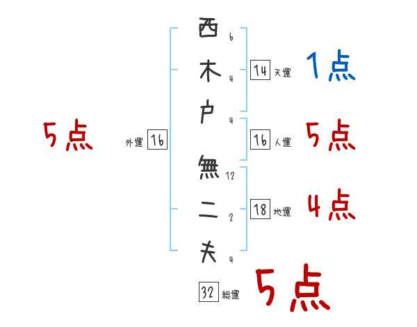 西木戸無二夫さんの画数の鑑定結果