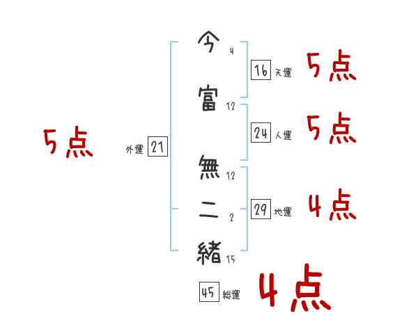 今富無二緒さんの画数の鑑定結果